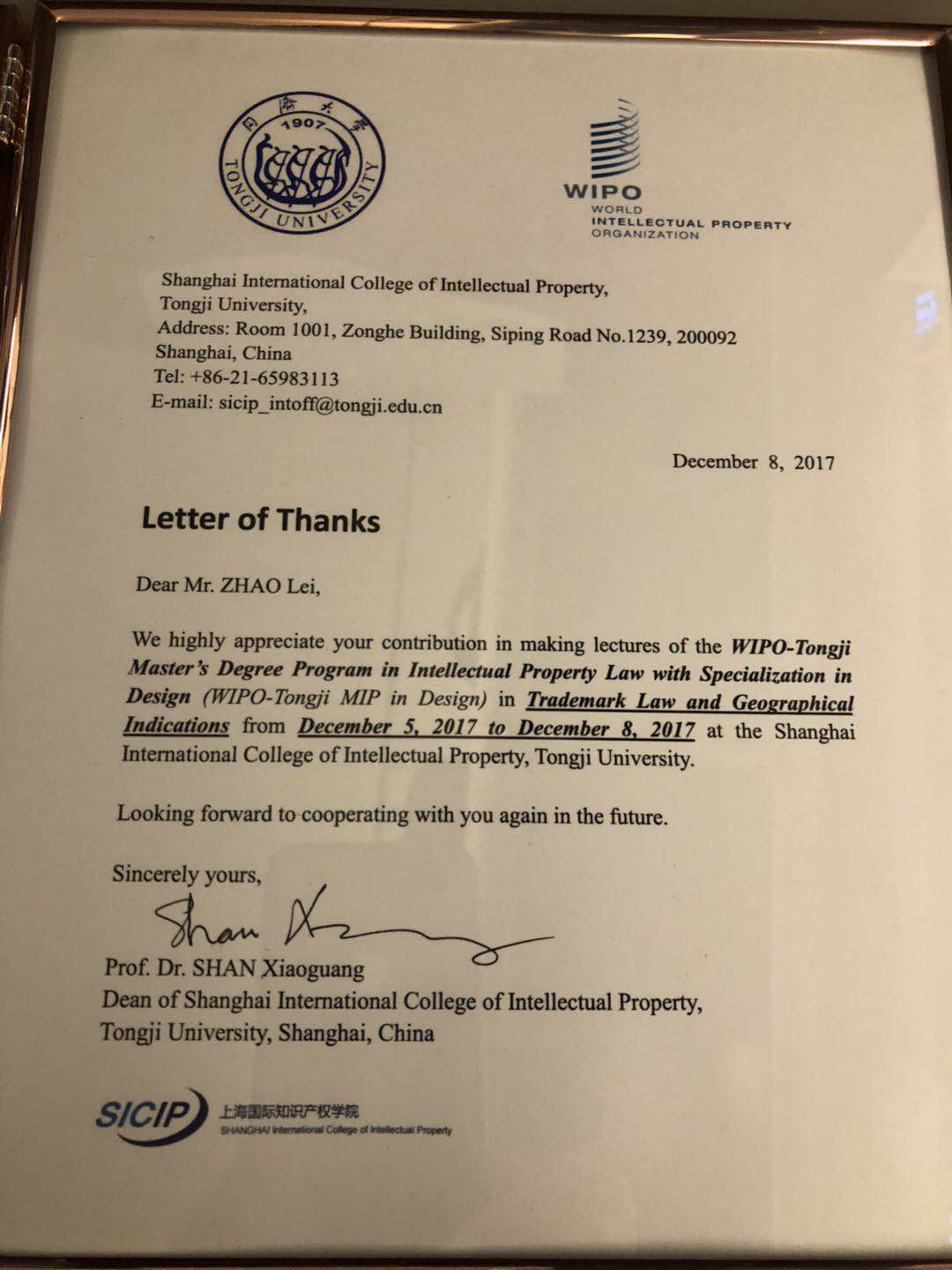 2017年12月5日到8日,集佳合伙人趙雷律師應(yīng)邀前往上海,受聘兼職教授為首屆上海國際知識產(chǎn)權(quán)學(xué)院的2017屆新生進行授課講學(xué)。上海國際知識產(chǎn)權(quán)學(xué)院成立于同濟大學(xué),是世界知識產(chǎn)權(quán)組織第一次同中國高校攜手合作,為培養(yǎng)知識產(chǎn)權(quán)國際化人才開展的世界知識產(chǎn)權(quán)組織—同濟大學(xué)聯(lián)合培養(yǎng)知識產(chǎn)權(quán)法碩士項目。本屆新生匯集了包含中國在內(nèi)的21個國家的學(xué)生,涵蓋了非洲、歐洲、拉美和亞洲的多個國家和地區(qū),其中一部分是其所在國家商標(biāo)局、版權(quán)局的現(xiàn)任審查員、仲裁員、律師。