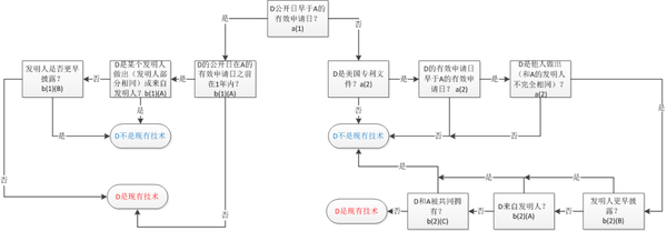 下圖示出了一種判斷對(duì)比文件D是否是專利申請(qǐng)A的現(xiàn)有技術(shù)的方法。