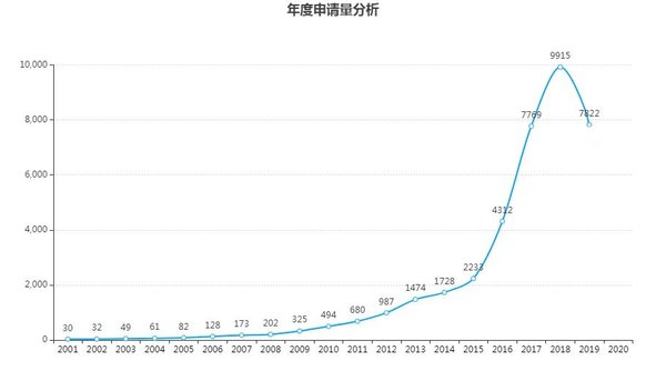 經(jīng)過檢索,排除處于無效或撤回等狀態(tài)的專利,篩選當前法律狀態(tài)為有權和審中(即處于授權、部分無效、權利恢復、實審或公開的狀態(tài))的專利進行分析,這部分的總量為38785件。