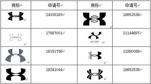 經(jīng)檢索,筆者也查詢到的確有不少商標申請人在第25類模仿第三人的標識申請注冊(如下表所示),但訴爭商標“ ”整體由5個六邊形線段構成,大小一致,并未包含任何“U”、“A”字母、中部鏤空、線條粗細變化等引證商標的核心設計元素,亦未在引證商標的基礎上進行陰影變化、大小比例調(diào)整、上下左右錯位和移位、顏色填充、部位截取等設計變化,因此亦不存在抄襲或惡意模仿之情形。