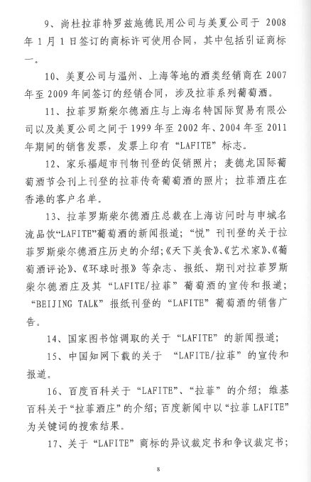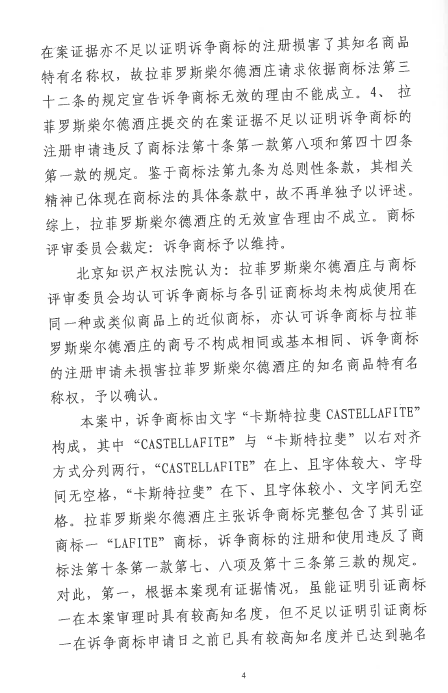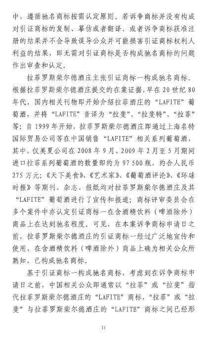 自2016年以來,商評委、北京知識產(chǎn)權(quán)法院已經(jīng)先后在十幾個裁定或行政判決中認定“LAFITE”為馳名商標,但大多還在行政訴訟程序之中。本案是首個終審判決,對“LAFITE”在中國的馳名商標保護之路,具有里程碑式的重要意義。