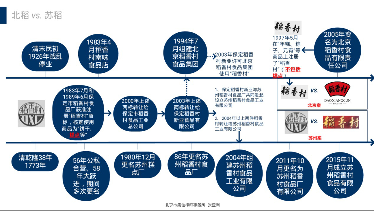 10月12日,蘇州稻香村在一審中獲得勝訴,北京稻香村被判停止在糕點(diǎn)類商品上使用“稻香村”標(biāo)識(shí),并賠償蘇稻115萬(wàn)元。而就在一個(gè)月前的9月10日,北京知識(shí)產(chǎn)權(quán)法院判決,北京蘇稻公司、蘇州稻香村公司停止在“粽子、月餅、糕點(diǎn)”等商品上使用“稻香村”商標(biāo),賠償原告北京稻香村公司經(jīng)濟(jì)損失及合理費(fèi)用3000萬(wàn)元。為何北京、蘇州兩個(gè)法院判決”相反“?北京稻香村和蘇州稻香村真有“冒牌貨”?十多年的商標(biāo)戰(zhàn),誰(shuí)勝誰(shuí)負(fù)?北京時(shí)間獨(dú)家邀請(qǐng)知識(shí)產(chǎn)權(quán)方面知名律師張亞洲,詳解南北稻香村商標(biāo)戰(zhàn)。