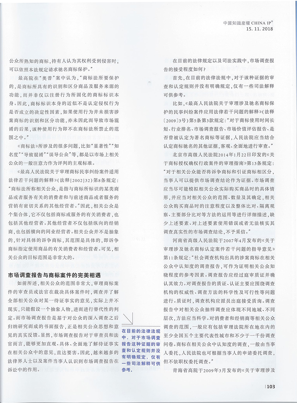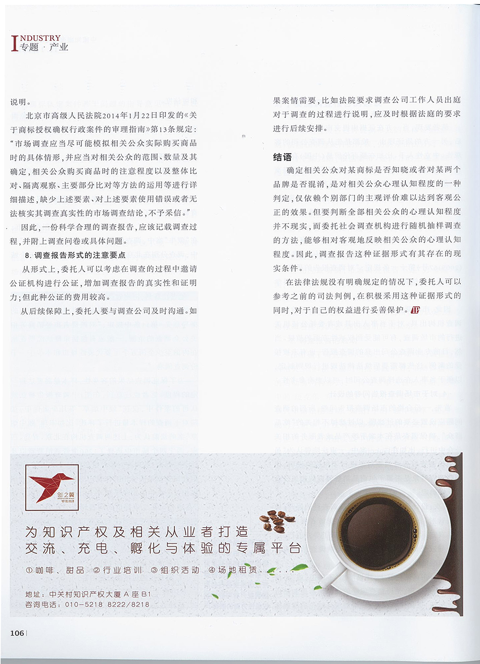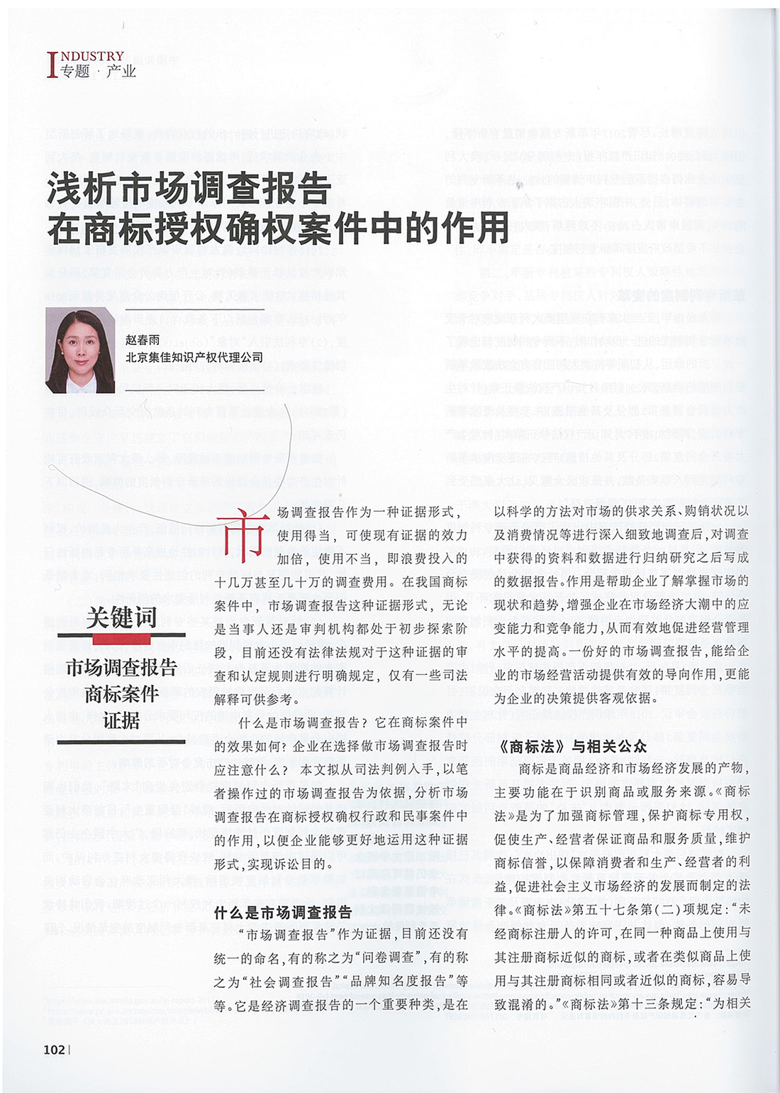 集佳文章《淺析市場調(diào)查報(bào)告在商標(biāo)授權(quán)確權(quán)案件中的作用》在《中國知識產(chǎn)權(quán)》發(fā)表