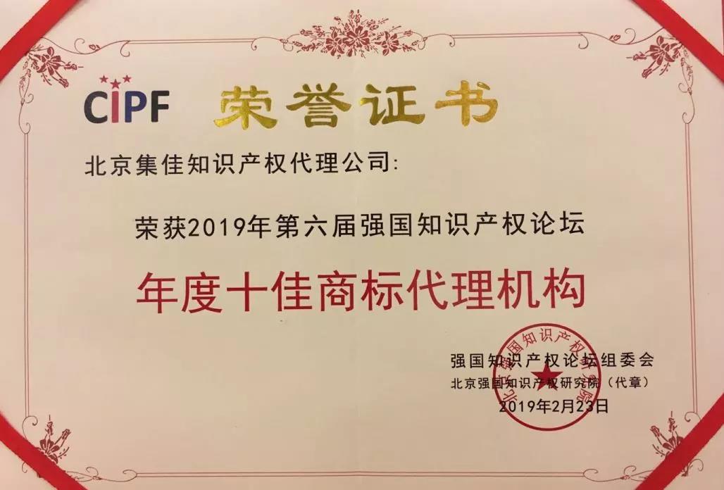 會(huì)上,強(qiáng)國(guó)知識(shí)產(chǎn)權(quán)論壇組委會(huì)對(duì)“2019強(qiáng)國(guó)知識(shí)產(chǎn)權(quán)論壇服務(wù)業(yè)‘十佳’進(jìn)行了頒獎(jiǎng)。組委會(huì)以“創(chuàng)新、協(xié)調(diào)、開放、共享”發(fā)展理念為指導(dǎo),以“責(zé)任、創(chuàng)新、挑戰(zhàn)”為關(guān)鍵詞,以“創(chuàng)新力、影響力、發(fā)展力、經(jīng)營(yíng)力”為評(píng)選標(biāo)準(zhǔn),評(píng)選出2018年度在知識(shí)產(chǎn)權(quán)領(lǐng)域商標(biāo)、專利和法律服務(wù)各方面做出突出貢獻(xiàn)的優(yōu)秀機(jī)構(gòu)和個(gè)人。集佳以較強(qiáng)的專業(yè)服務(wù)水平、領(lǐng)先的實(shí)踐成果、前瞻的發(fā)展理念和創(chuàng)新的經(jīng)營(yíng)思維獲得好評(píng),入選“年度十佳商標(biāo)代理機(jī)構(gòu)”。