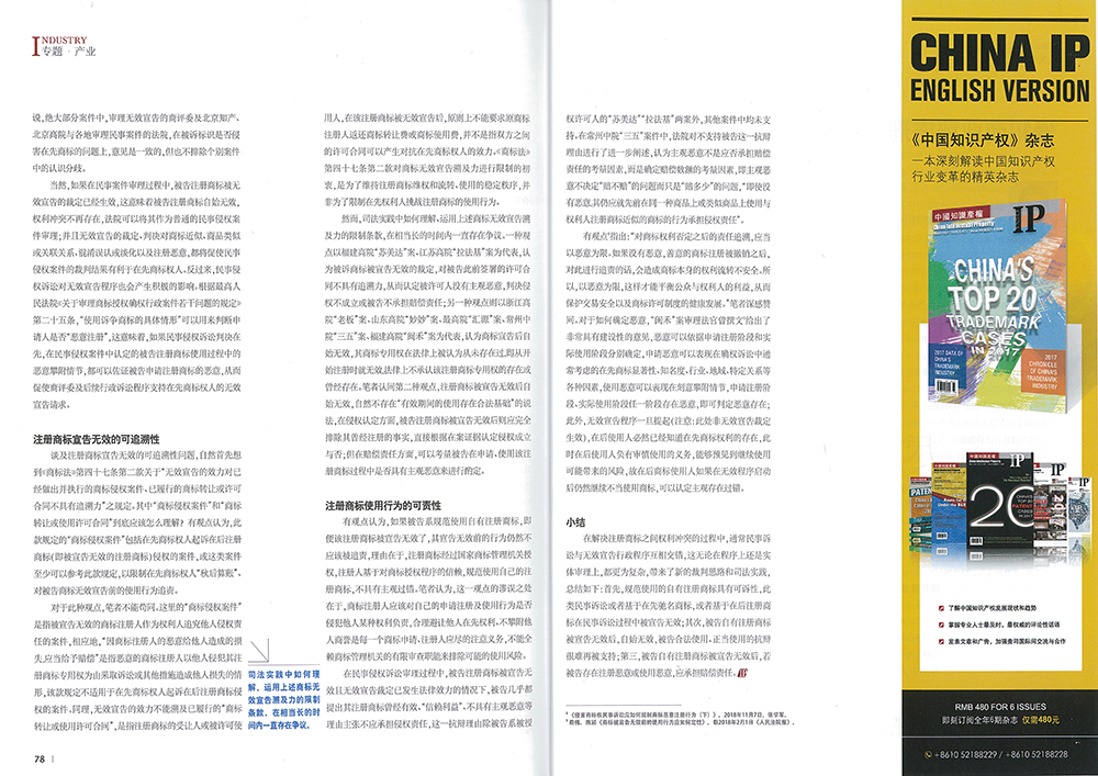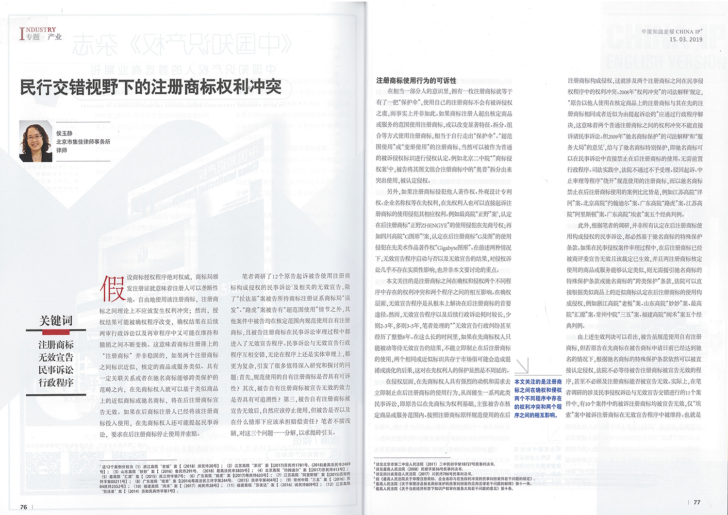 集佳文章《民行交錯(cuò)視野下的注冊(cè)商標(biāo)權(quán)利沖突》在《中國(guó)知識(shí)產(chǎn)權(quán)》發(fā)表