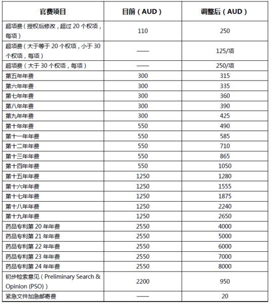 2020年10月1日起,澳大利亞知識產(chǎn)權(quán)局將上調(diào)專利、工業(yè)外觀設計及商標的官費(僅有少部分費用有所下調(diào))。這次費用調(diào)整涉及了電子支付方式(“首選方式”)和通過“其他方式”支付兩種支付方式,在此主要列舉采用電子方式支付官費涉及的費用調(diào)整項目。