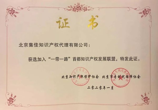 為了貫徹落實(shí)國(guó)家及首都知識(shí)產(chǎn)權(quán)戰(zhàn)略,進(jìn)一步提升首都知識(shí)產(chǎn)權(quán)國(guó)際化發(fā)展水平,2020年1月7日,由北京市知識(shí)產(chǎn)權(quán)局指導(dǎo),北京知識(shí)產(chǎn)權(quán)保護(hù)協(xié)會(huì)、北京市專利代理師協(xié)會(huì)聯(lián)合發(fā)起的“一帶一路”首都知識(shí)產(chǎn)權(quán)發(fā)展聯(lián)盟正式成立。北京集佳知識(shí)產(chǎn)權(quán)代理有限公司獲選加入發(fā)展聯(lián)盟,成為首批成員單位之一。
