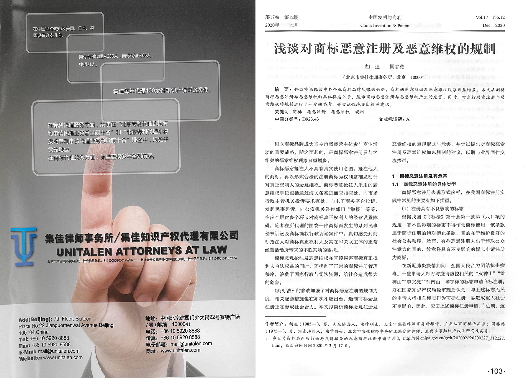 法律聲明 Unitalen Mail Box ?2016 Unitalen Attorneys at Law 版權所有 集佳知識產(chǎn)權代理有限公司 京ICP備11033076號 京公網(wǎng)安備11010502020670