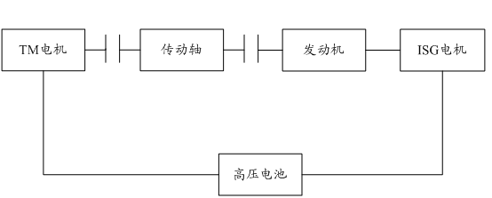 例如,在一種混合動(dòng)力汽車的控制方法的發(fā)明創(chuàng)造中,如上圖1所示,混合動(dòng)力汽車包括TM電機(jī)、ISG電機(jī)、發(fā)動(dòng)機(jī)以及傳動(dòng)軸,在正常行駛時(shí),TM電機(jī)、ISG電機(jī)、發(fā)動(dòng)機(jī)均可以作為動(dòng)力源,以為傳動(dòng)軸提供動(dòng)力,高壓電池可以為T(mén)M電機(jī)和ISG電機(jī)供電;在升擋或者減速狀態(tài)時(shí),則由高壓電池回收TM電機(jī)和ISG電機(jī)所產(chǎn)生的能量,以降低動(dòng)力源的轉(zhuǎn)速。然而,在升擋或者減速狀態(tài)時(shí),常出現(xiàn)高壓電池自身充電功率受限的情況,高壓電池?zé)o法較好地吸收TM電機(jī)和ISG電機(jī)所產(chǎn)生的電能,使得動(dòng)力源的轉(zhuǎn)速無(wú)法下降,就會(huì)造成升擋失敗或者升擋時(shí)間過(guò)長(zhǎng)、減速過(guò)程車輛出現(xiàn)抖動(dòng)的情況。