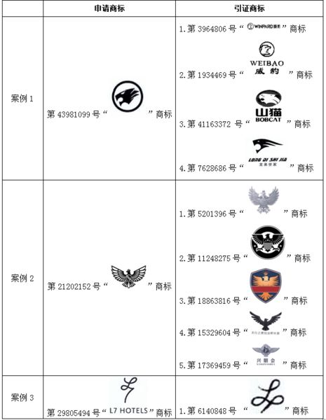 下列申請商標(biāo),均在駁回復(fù)審程序中被國知局認(rèn)定與引證商標(biāo)構(gòu)成近似商標(biāo),從而在復(fù)審商品/服務(wù)上被予以駁回。
