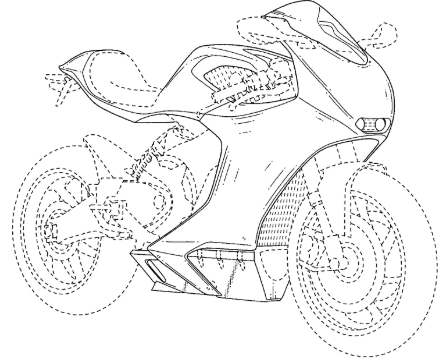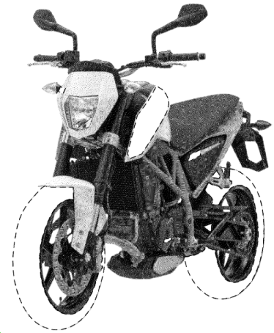 在線條圖中局部外觀設(shè)計(jì)以實(shí)線和虛線表示,比如下方圖1所示的摩托車(chē),其保護(hù)范圍由實(shí)線決定,虛線表示不保護(hù)的部分。虛線的線寬需小于實(shí)線的線寬。