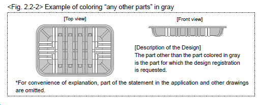 當(dāng)通過(guò)著色來(lái)區(qū)分保護(hù)部分和不保護(hù)部分時(shí),同時(shí)在外觀設(shè)計(jì)說(shuō)明中應(yīng)指出“除著色部分(如除灰色部分)以外的任何部分”是作為部分外觀設(shè)計(jì)請(qǐng)求進(jìn)行保護(hù)的部分,如下圖10所示??梢钥闯觯@一點(diǎn)跟歐美的涂覆或者淡化處理是有所區(qū)別的,日本允許用不同的顏色加上語(yǔ)言說(shuō)明來(lái)進(jìn)行區(qū)分。