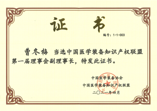 2021年4月10日,中國醫(yī)學(xué)裝備知識產(chǎn)權(quán)聯(lián)盟(以下簡稱“聯(lián)盟”)成立會暨中國醫(yī)學(xué)裝備知識產(chǎn)權(quán)發(fā)展論壇在北京成功召開。國家衛(wèi)生健康委、工業(yè)和信息化部、國家知識產(chǎn)權(quán)局、中國醫(yī)學(xué)裝備協(xié)會、聯(lián)盟發(fā)起單位及醫(yī)療機(jī)構(gòu)、企業(yè)、金融等機(jī)構(gòu)的180余名代表出席此次大會。北京集佳知識產(chǎn)權(quán)代理有限公司受邀成為聯(lián)盟第一屆理事會副理事長單位,集佳知識產(chǎn)權(quán)顧問曹冬梅當(dāng)選聯(lián)盟第一屆理事會副理事長。