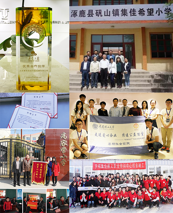責(zé)任于心,擔(dān)當(dāng)于行。作為一家有溫度的企業(yè),集佳在用心為企業(yè)提供知識(shí)產(chǎn)權(quán)保護(hù)策略的同時(shí),也一直自覺(jué)承擔(dān)各項(xiàng)社會(huì)責(zé)任,熱心參與各項(xiàng)公益事業(yè),發(fā)揚(yáng)行業(yè)擔(dān)當(dāng)精神,堅(jiān)持不懈用愛(ài)心回饋社會(huì)。尤其是在教育領(lǐng)域,集佳不僅重視專(zhuān)業(yè)人才培養(yǎng),通過(guò)愛(ài)心獎(jiǎng)學(xué)金、集佳班、提供社會(huì)實(shí)踐等方式與中國(guó)政法大學(xué)、同濟(jì)大學(xué)、大連理工大學(xué)等眾多高校合作培養(yǎng)知識(shí)產(chǎn)權(quán)專(zhuān)業(yè)人才,更是特別關(guān)注青少年的教育和成長(zhǎng)。目前,集佳已援建13所希望小學(xué),并多次進(jìn)行回訪,持續(xù)關(guān)注孩子們的學(xué)習(xí)和成長(zhǎng),了解學(xué)校和孩子們的真實(shí)所需,提供最有效的幫助。同時(shí),集佳設(shè)立了多項(xiàng)助學(xué)基金,對(duì)多所小學(xué)、中學(xué)、技術(shù)學(xué)校等提供幫扶。集佳期望,通過(guò)一點(diǎn)一滴的幫助,讓孩子們的生活和學(xué)習(xí)更加豐富多彩,讓他們感受著愛(ài)的力量,懷抱希望,用優(yōu)異的學(xué)業(yè)報(bào)效祖國(guó),用同樣的關(guān)愛(ài)回報(bào)社會(huì)。