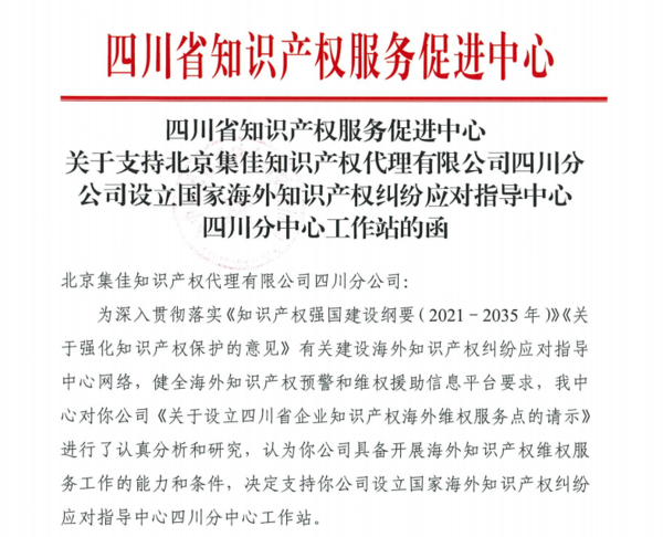 集佳四川分公司程麗華總經(jīng)理對(duì)國(guó)家海外知識(shí)產(chǎn)權(quán)糾紛應(yīng)對(duì)指導(dǎo)中心四川分中心對(duì)集佳的認(rèn)可及關(guān)心表示感謝,并希望未來(lái)能夠更多地參與到海外知識(shí)產(chǎn)權(quán)維權(quán)活動(dòng)中去,通過(guò)專業(yè)的知識(shí)產(chǎn)權(quán)服務(wù)回饋社會(huì),為企業(yè)保駕護(hù)航。