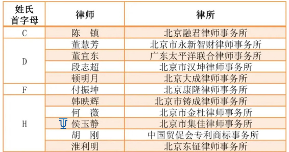 2021年12月16日,由知產(chǎn)力和知產(chǎn)寶聯(lián)合推出的“第三屆中國優(yōu)秀知識產(chǎn)權(quán)律師榜TOP50”正式公布,北京市集佳律師事務(wù)所合伙人侯玉靜律師榮登榜單,這是侯律師連續(xù)第二年入選。