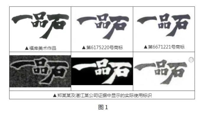 2016年6月,鄭某紅、一品石公司以侵害其注冊(cè)商標(biāo)專用權(quán)為由,將青島福庫(kù)公司訴至廣東省深圳市中級(jí)人民法院。2017年5月,青島福庫(kù)公司以鄭某紅、一品石公司使用“一品石”商標(biāo)侵害其“一品石”美術(shù)作品著作權(quán)為由,將鄭某紅、一品石公司也訴至廣東省深圳市中級(jí)人民法院。