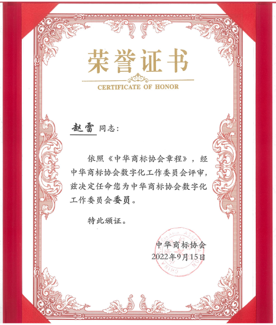 在本次論壇上,中華商標(biāo)協(xié)會(huì)數(shù)字化工作委員會(huì)正式成立,并舉行揭牌儀式?!吨R(shí)產(chǎn)權(quán)強(qiáng)國(guó)建設(shè)綱要(2021-2035年)》、《“十四五”國(guó)家知識(shí)產(chǎn)權(quán)保護(hù)和運(yùn)用規(guī)劃》及《知識(shí)產(chǎn)權(quán)公共服務(wù)“十四五”規(guī)劃》等文件強(qiáng)調(diào)指出,要建立市場(chǎng)化、社會(huì)化的信息加工和服務(wù)機(jī)制,推動(dòng)知識(shí)產(chǎn)權(quán)信息公共服務(wù)和市場(chǎng)化服務(wù)協(xié)調(diào)發(fā)展;要加強(qiáng)知識(shí)產(chǎn)權(quán)信息化、智能化基礎(chǔ)設(shè)施建設(shè),推動(dòng)知識(shí)產(chǎn)權(quán)數(shù)字化服務(wù)普惠應(yīng)用。同時(shí),對(duì)于企業(yè)和商標(biāo)代理機(jī)構(gòu)而言,如何在數(shù)字化時(shí)代進(jìn)行高效的管理和溝通,做好品牌管理、預(yù)警和保護(hù)工作,一直都是市場(chǎng)主體的核心訴求。基于上述信息化和數(shù)字化的政策背景以及市場(chǎng)主體對(duì)數(shù)字化轉(zhuǎn)型的需求,中華商標(biāo)協(xié)會(huì)成立“數(shù)字化工作委員會(huì)”,旨在促進(jìn)行業(yè)數(shù)字化轉(zhuǎn)型升級(jí),為貫徹上述《綱要》和《規(guī)劃》做出應(yīng)有貢獻(xiàn)。會(huì)上,中華商標(biāo)協(xié)會(huì)馬夫會(huì)長(zhǎng)為首批數(shù)字化工作委員會(huì)的委員單位和委員頒發(fā)證書(shū)。集佳知識(shí)產(chǎn)權(quán)入選了首批數(shù)字化工作委員會(huì)委員單位,趙雷律師被任命為數(shù)字化工作委員會(huì)委員。