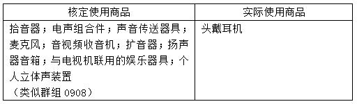 由《類似商品和服務(wù)區(qū)分表》可知,“頭戴耳機(jī)”為類似群組0908的規(guī)范商品名稱,而系爭商標(biāo)的核定使用商品也均屬于類似群組0908。很顯然,實(shí)際使用商品和核定使用商品完全屬于相同的類似群組,構(gòu)成類似商品。