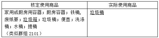 由上表可知,系爭商標(biāo)僅使用在一個(gè)商品,即“垃圾桶”上。并且,“垃圾桶”就是其核定使用商品之一,顯然在該商品上的商標(biāo)使用應(yīng)該被認(rèn)可。