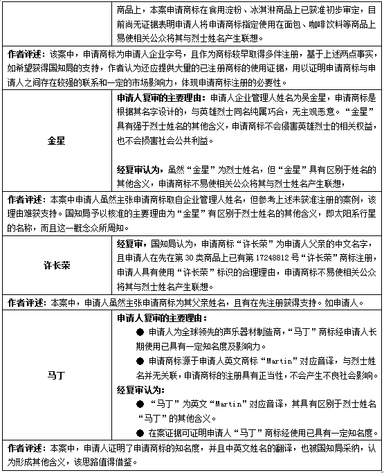 綜上分析,縱然從商標(biāo)申請(qǐng)人的角度出發(fā),其申請(qǐng)商標(biāo)具有一定的合理來(lái)源,其商標(biāo)使用難以使消費(fèi)者聯(lián)想到烈士名稱,但從以上案例可以看出,在商標(biāo)申請(qǐng)的審查階段,國(guó)知局對(duì)烈士名稱采取強(qiáng)保護(hù)的態(tài)度,申請(qǐng)人在遭遇商標(biāo)與烈士名稱沖突的情況下,需謹(jǐn)慎對(duì)待,從商標(biāo)來(lái)源、已取得注冊(cè)商標(biāo)的情況、企業(yè)發(fā)展及商標(biāo)使用現(xiàn)狀等多角度舉證,以期獲得商標(biāo)注冊(cè)。