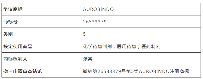 跨國企業(yè)A公司進入中國市場的過程中將其長期使用的標志AUROBINDO在中國申請注冊商標,于2021年12月提出注冊商標申請,國家知識產(chǎn)權(quán)局經(jīng)審查后決定駁回注冊申請,理由是該商標與自然人張某在類似商品上已注冊的第26533379號“AUROBINDO”商標近似。面對自有商標在國內(nèi)被搶注的情況,A公司隨即向國家知識產(chǎn)權(quán)局商標局提交撤銷三年不使用申請,申請撤銷張某名下第26533379“AUROBINDO”商標在第5類“化學藥物制劑;醫(yī)用藥物;醫(yī)藥制劑”等全部核定使用商品上的注冊。同時A公司于2022年3月申請駁回商標注冊申請復審,以引證商標處于撤三之中,其權(quán)利狀態(tài)不確定為由請求對本案予以緩裁。2022年9月,國家知識產(chǎn)權(quán)發(fā)文通知撤銷張某名下第26533379“AUROBINDO”商標。此外,A公司也在其他與公司業(yè)務相關(guān)的商品類別上申請注冊“AUROBINDO”商標,完善其在中國商標布局。目前A公司在第5類“醫(yī)藥制劑;醫(yī)用藥物;補藥;藥用化學制劑;醫(yī)用化學制劑;針劑;原料藥;生化藥品;片劑”申請的“AUROBINDO”商標已成功注冊。