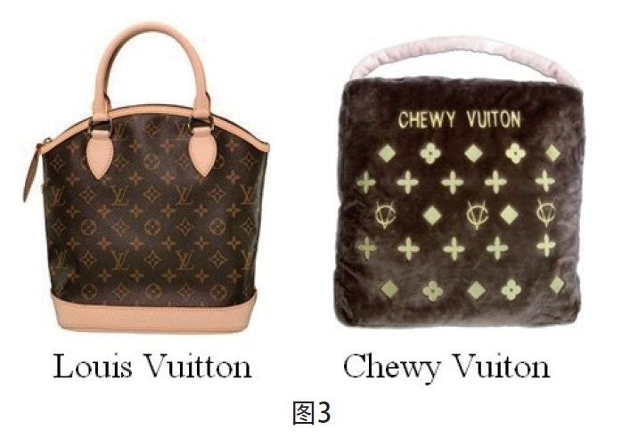 本案原告仍然是路易威登,其于2020年將寵物用品公司Haute Diggity Dog, LLC告上法庭。被告是一家經(jīng)營寵物用品的公司,出售Chewy Vuiton寵物玩具(見圖3)。