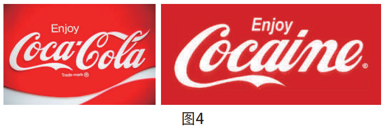 被告Gemini Rising, Inc.是一家海報設(shè)計和銷售公司,其將可口可樂公司的商標(biāo)“Enjoy Coca-Cola”(享用可口可樂)改為“Enjoy Cocaine”(享用可卡因)并印制在海報上,其字體和設(shè)計風(fēng)格與可口可樂公司的商標(biāo)類似(見圖4)。
