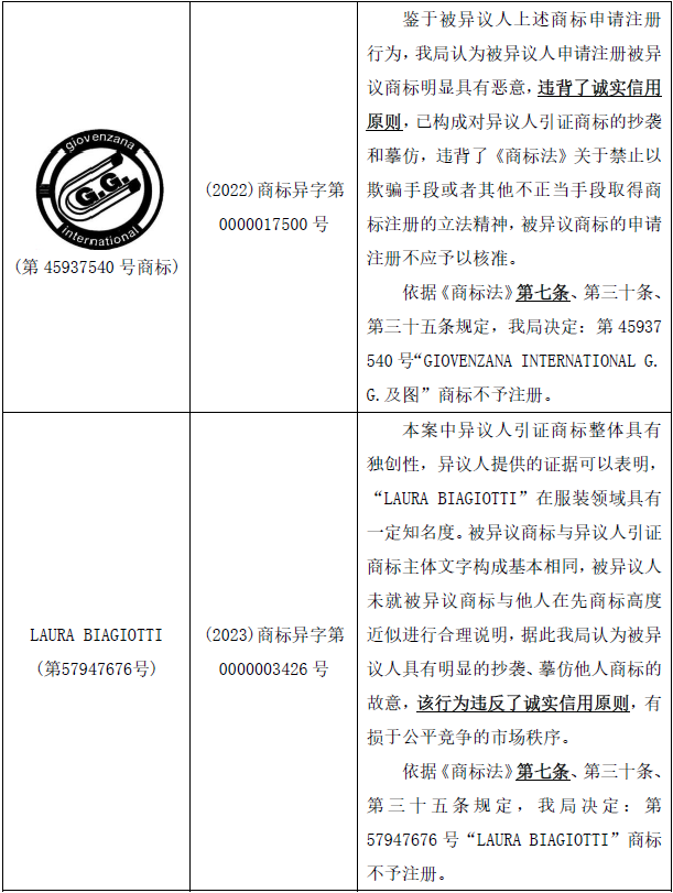 5.第57947676號(hào)“LAURA BIAGIOTTI”商標(biāo)不予注冊(cè)的決定
