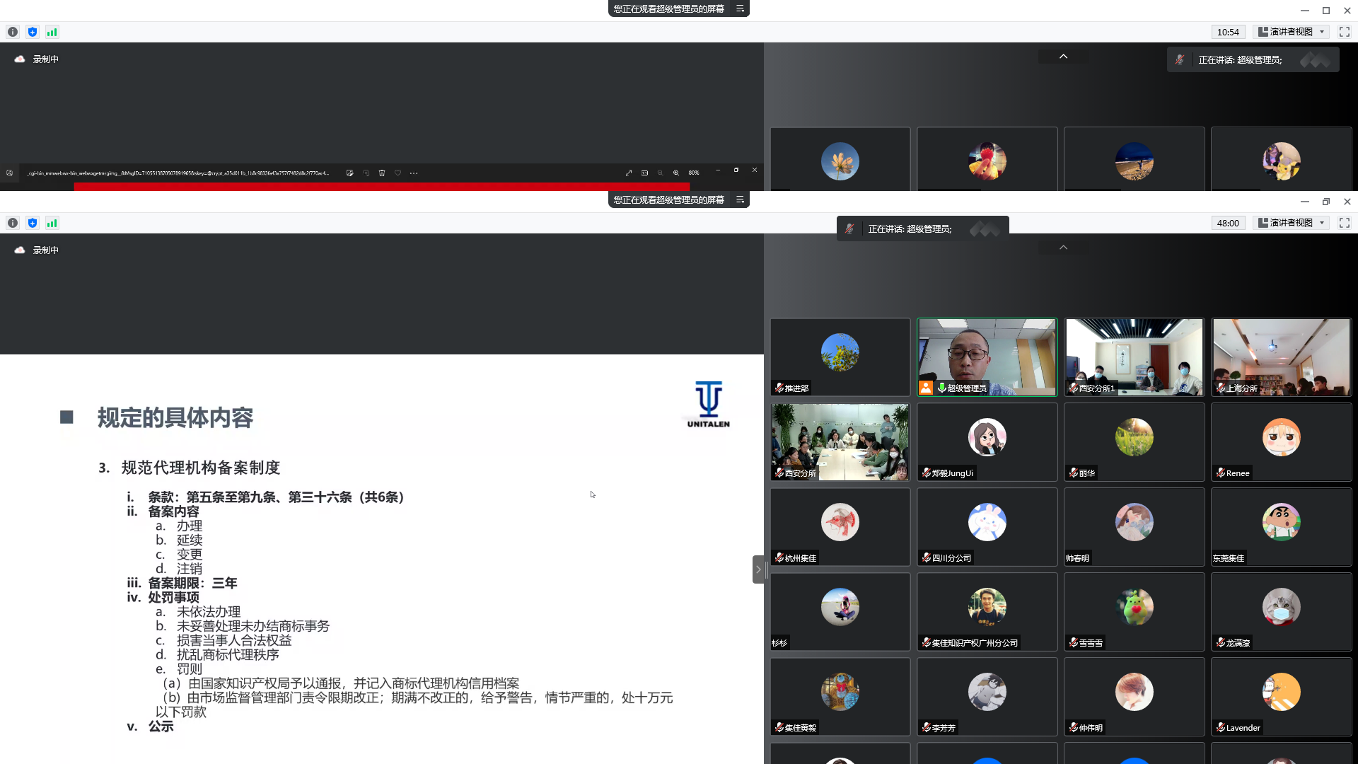 2022年11月15日下午,在于澤輝所長的帶領(lǐng)下,集佳組織全體員工認(rèn)真學(xué)習(xí)《商標(biāo)代理監(jiān)督管理規(guī)定》,集佳各分所與辦事處同事通過視頻會議形式一起參加培訓(xùn)并積極參與討論。