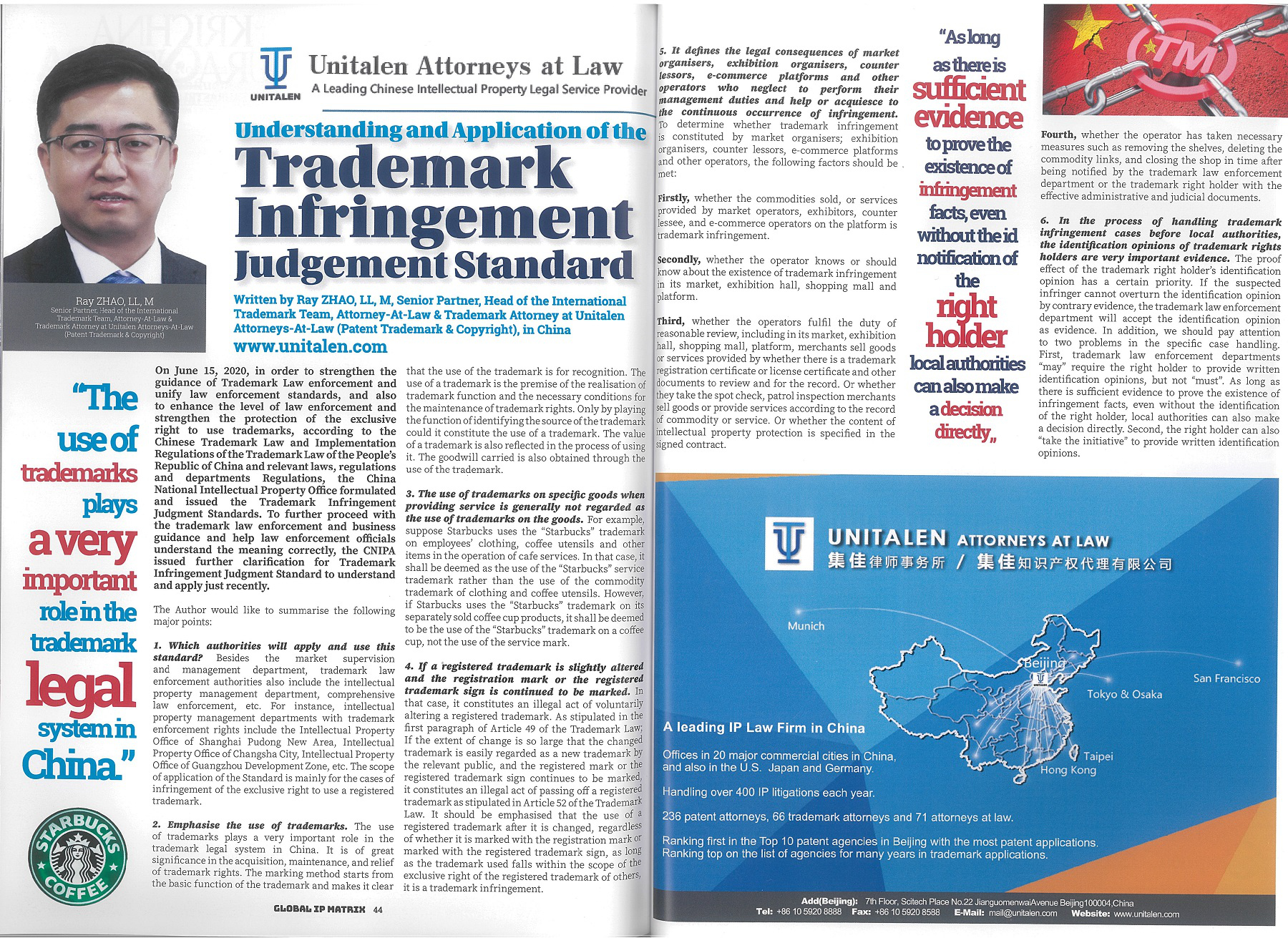 集佳合伙人趙雷律師文章《Understanding and application of Trademark Infringement Judgment Standard》在《The Global IP Matrix ISSUE 14》發(fā)表