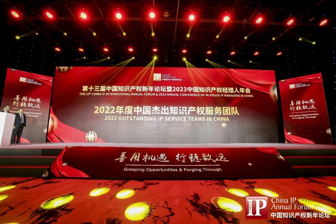 2月11日,“第十三屆中國知識產(chǎn)權新年論壇暨2023中國知識產(chǎn)權經(jīng)理人年會”及頒獎盛典在北京盛大開幕。集佳知識產(chǎn)權憑借精湛的業(yè)務能力、卓越的專業(yè)實力及出眾的團隊凝聚力蟬聯(lián)2022年度“中國杰出知識產(chǎn)權服務團隊”獎項。合伙人王秀青女士代表集佳出席盛會并領獎。