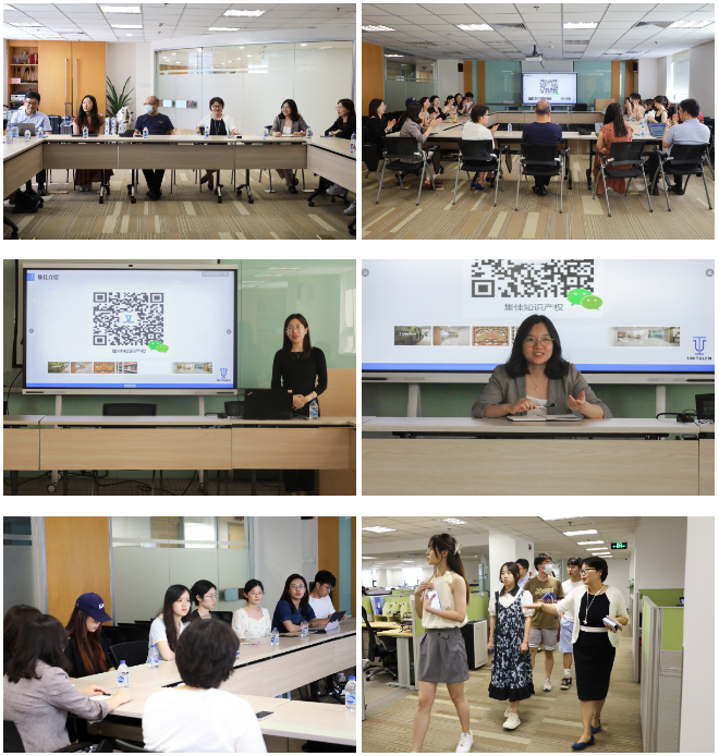 7月4日,同濟大學(xué)上海國際知識產(chǎn)權(quán)學(xué)院研學(xué)團在學(xué)院黨委書記覃文忠主任、學(xué)院助理研究員劉迪老師、學(xué)院輔導(dǎo)員韓越老師的帶隊下訪問集佳,開展研學(xué)交流活動,集佳人力資源部高巍主任、李珊珊、同濟大學(xué)校友伍君律師等熱情接待來訪師生。