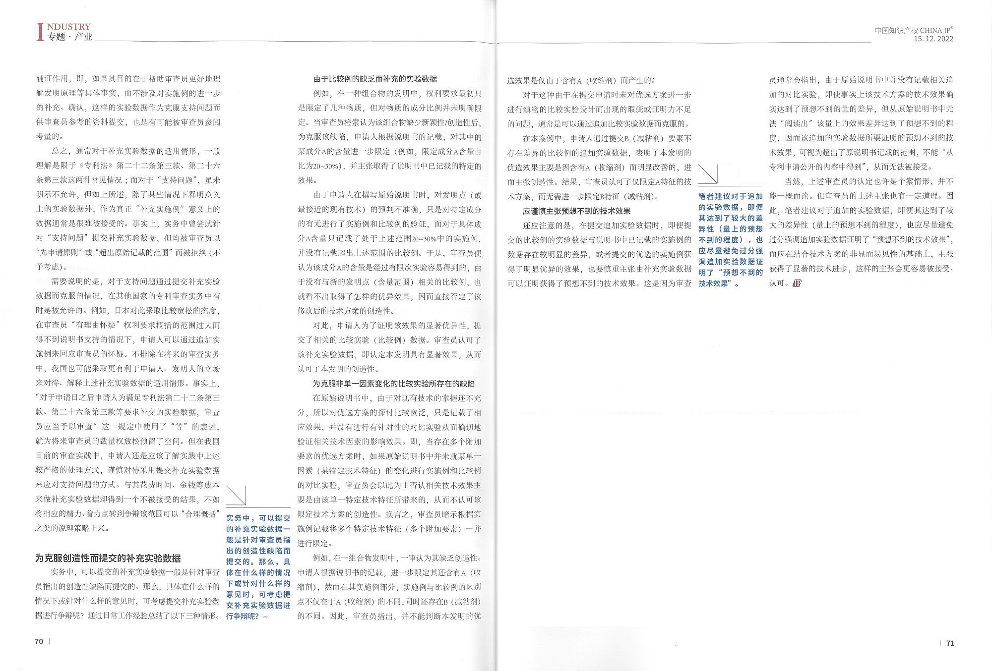 集佳文章《淺議專利審查中追加實(shí)驗(yàn)數(shù)據(jù)的考量》在《中國(guó)知識(shí)產(chǎn)權(quán)》發(fā)表