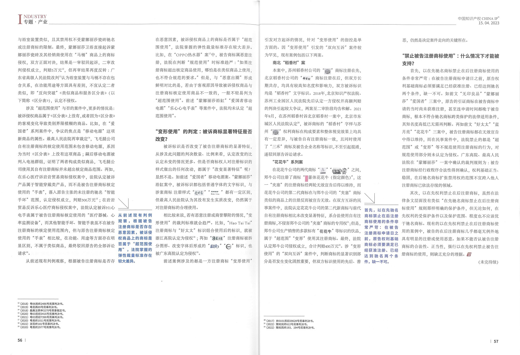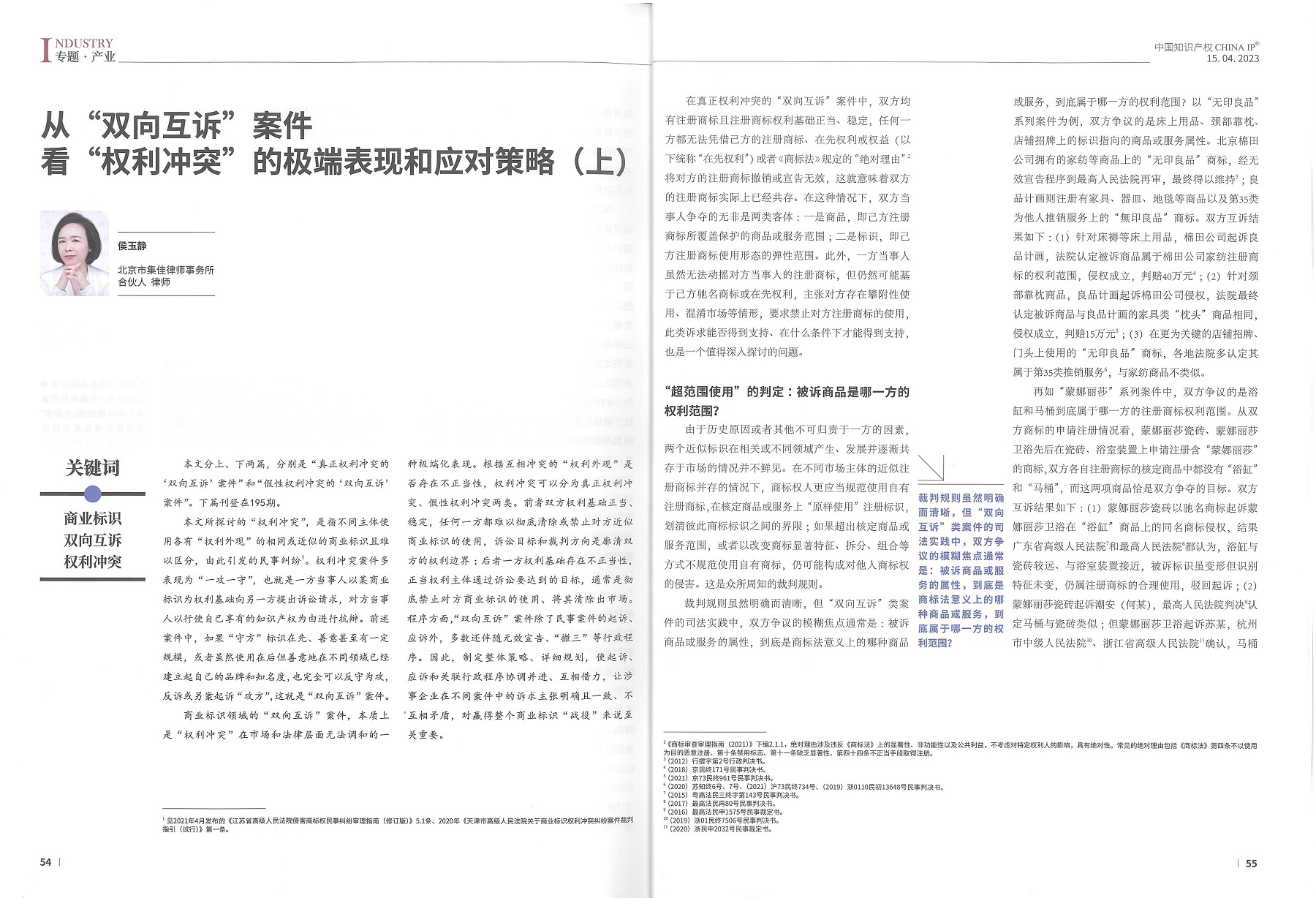 集佳文章《從“雙向互訴”案件看“權利沖突”的極端表現和應對策略(上)》在《中國知識產權》發(fā)表