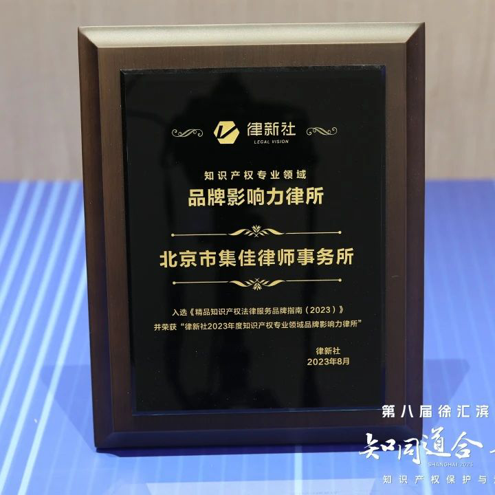 論壇上,主辦方律新社首次發(fā)布了《精品知識產(chǎn)權(quán)法律服務(wù)品牌指南(2023)》,并在申報與調(diào)研的基礎(chǔ)上,綜合專家評審會、同行評價、客戶評價等多方信息,根據(jù)專業(yè)服務(wù)及品牌表現(xiàn),隆重頒發(fā)律新社2023年度知識產(chǎn)權(quán)專業(yè)領(lǐng)域“品牌影響力律所”和“品牌之星”律師榮譽。北京市集佳律師事務(wù)所憑借卓越的綜合實力和豐富的訴訟經(jīng)驗入選“品牌影響力律所”榜單,集佳律所主任、合伙人李永波律師與合伙人閆春德律師被授予“實力律師”榮譽稱號,合伙人侯玉靜律師被授予“匠心律師”榮譽稱號,“集佳知識產(chǎn)權(quán)”公眾號獲評“專業(yè)自媒體影響力獎”。