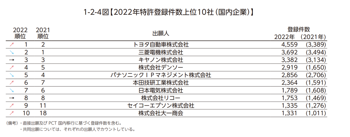 前10大日本國內(nèi)企業(yè)發(fā)明專利注冊量: