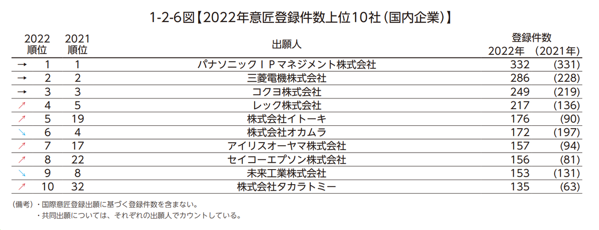 前10大日本國內(nèi)企業(yè)外觀設(shè)計注冊量: