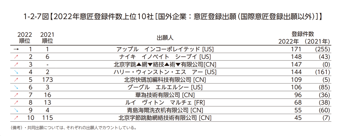 前10大日本境外企業(yè)外觀設(shè)計注冊量: