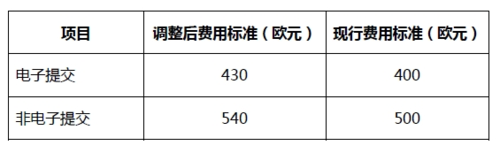 異議費(fèi):900 歐元(當(dāng)前為800 歐元)