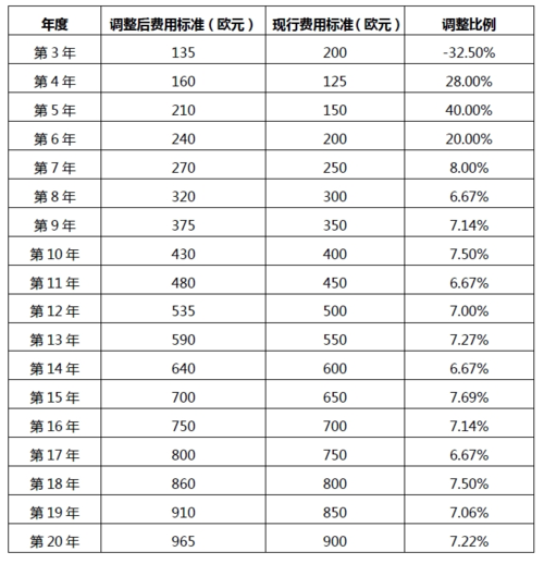附加檢索費(fèi):370 歐元(當(dāng)前為350 歐元)