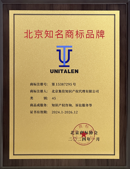 Recently, the Beijing Trademark Association released a recognition announcement of 2023 "Beijing Famous Trademark Brand," and Unitalen's trademark "" (No. 15387295) was awarded the honor as one of the first group of 37 recognized trademarks.
