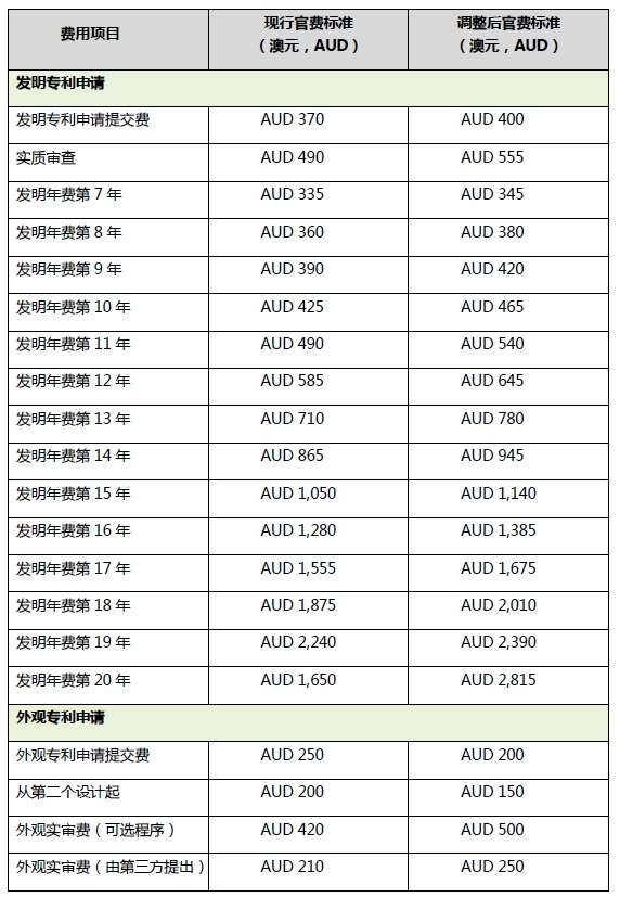 澳大利亞知識產(chǎn)權(quán)局每四年會(huì)針對官費(fèi)進(jìn)行一次調(diào)整,目前已在其官網(wǎng)公布了實(shí)施草案(Draft cost recovery implementation statement 2024-2025)并向公眾征求意見。據(jù)悉,澳大利亞知識產(chǎn)權(quán)局將于2024年7月公布最終版的官費(fèi)調(diào)整金額,調(diào)整后的官費(fèi)標(biāo)準(zhǔn)或?qū)⒂?024年10月1日生效。