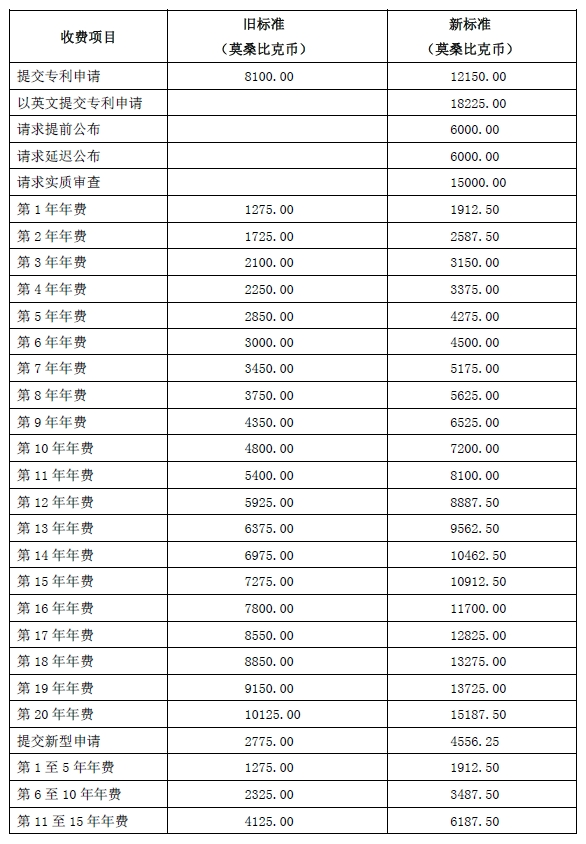 基于第154/2023號部長令,莫桑比克工業(yè)產(chǎn)權局近期宣布,于2024年2月26日更新知識產(chǎn)權相關業(yè)務的服務官費,涵蓋商標和專利各項程序,上漲幅度高達50%。其中,除了專利申請及年費等常規(guī)收費項目官費上漲以外,還新增了以英文提交專利申請等項目的收費。