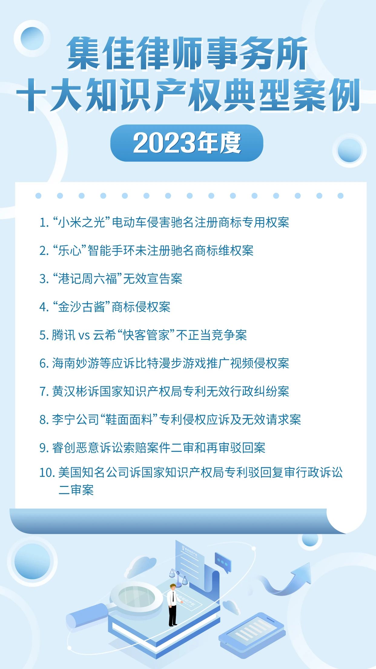 作為迎接4.26世界知識(shí)產(chǎn)權(quán)日的獻(xiàn)禮之一,北京市集佳律師事務(wù)所已連續(xù)十年開展十大知識(shí)產(chǎn)權(quán)典型案例的評(píng)選活動(dòng),其意義不僅在于展現(xiàn)集佳律師團(tuán)隊(duì)的專業(yè)能力和水準(zhǔn),更在于傳遞集佳全方位服務(wù)客戶的理念。在第24個(gè)世界知識(shí)產(chǎn)權(quán)日來臨之際,集佳律所從2023年度代理的眾多知識(shí)產(chǎn)權(quán)案件中篩選出具有代表性的十大案例,與各界同仁分享: