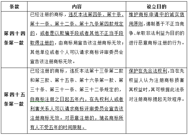 對(duì)于無(wú)效宣告的提出時(shí)間,《商標(biāo)法》第四十五條第一款規(guī)定了一個(gè)五年的限制條件,該規(guī)定源于立法者認(rèn)為,注冊(cè)商標(biāo)經(jīng)過(guò)五年使用,已經(jīng)具有了識(shí)別商品來(lái)源標(biāo)識(shí)的功能,在市場(chǎng)上能區(qū)分在先商標(biāo)與注冊(cè)商標(biāo)的情形,故應(yīng)被準(zhǔn)許共存于商業(yè)環(huán)境中,意在維護(hù)已經(jīng)形成和穩(wěn)定了的市場(chǎng)秩序,避免因輕率撤銷已注冊(cè)商標(biāo)給企業(yè)正常經(jīng)營(yíng)造成重大困難【1】。