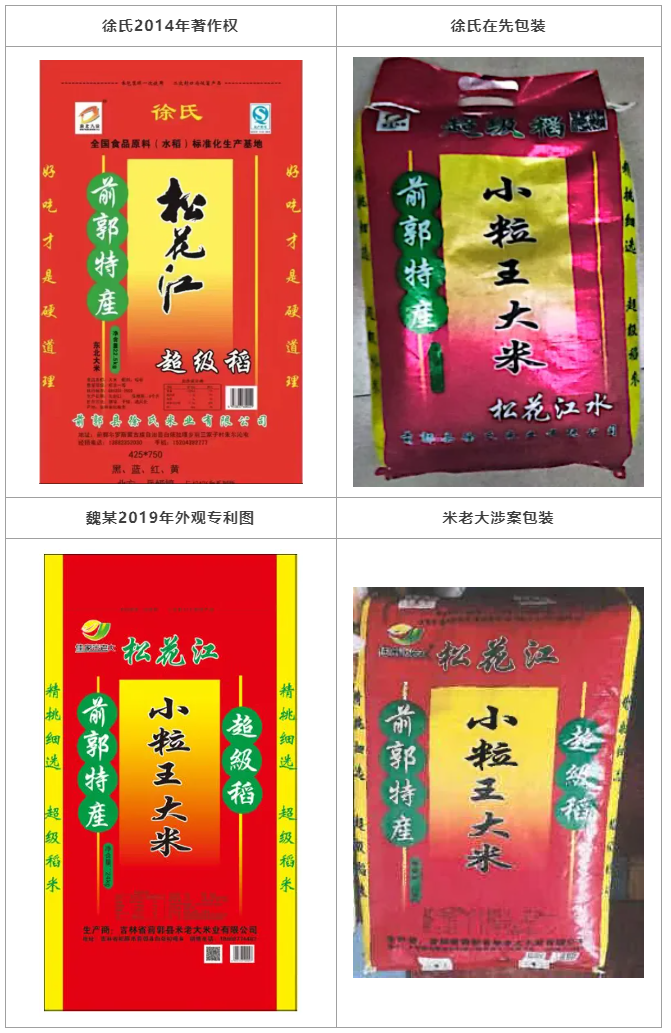28號案結(jié)案后,主辦律師建議客戶進(jìn)行反擊。一方面,徐氏米業(yè)公司和米老大米業(yè)公司注冊地址毗鄰,魏某通過前郭縣米老大米業(yè)公司在云南蒙自地區(qū)銷售小粒王大米,其經(jīng)銷商曾經(jīng)代理銷售徐氏米業(yè)小粒王大米,魏某具備“主觀惡意”;另一方面,徐氏米業(yè)公司早在2014年即完成了被訴稻米包裝袋的設(shè)計(jì),是原始著作權(quán)人,米老大公司使用的相似包裝袋與徐氏公司的產(chǎn)生了混淆。因此,可以針對魏某濫訴和米老大米業(yè)公司的著作權(quán)侵權(quán)和不正當(dāng)競爭行為進(jìn)行反訴維權(quán)。