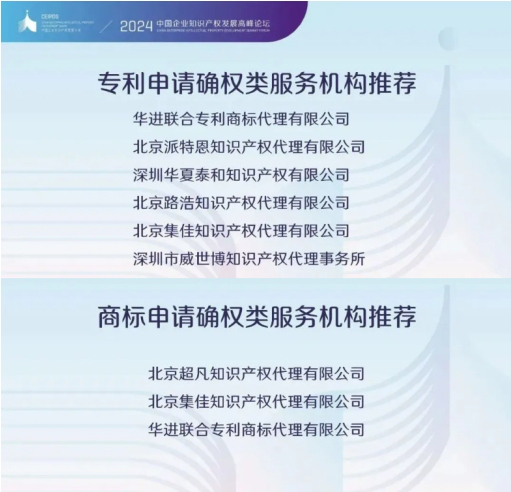 近日,由中國(guó)企業(yè)知識(shí)產(chǎn)權(quán)發(fā)展沙龍主辦的“2024中國(guó)企業(yè)知識(shí)產(chǎn)權(quán)發(fā)展高峰論壇”在深圳隆重舉行,論壇上發(fā)布了中國(guó)企業(yè)知識(shí)產(chǎn)權(quán)發(fā)展沙龍知識(shí)產(chǎn)權(quán)服務(wù)機(jī)構(gòu)推薦名單,集佳知識(shí)產(chǎn)權(quán)憑借出色的專(zhuān)業(yè)實(shí)力和良好的客戶口碑,榮登“專(zhuān)利申請(qǐng)確權(quán)類(lèi)服務(wù)機(jī)構(gòu)”“商標(biāo)申請(qǐng)確權(quán)類(lèi)服務(wù)機(jī)構(gòu)”榜單!