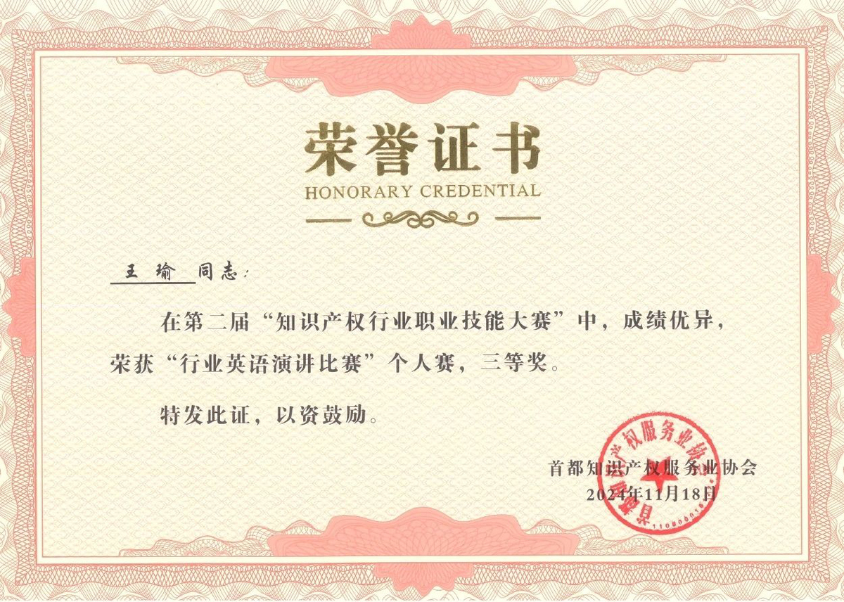 本屆大賽以“激揚(yáng)創(chuàng)新夢想 鑄就精彩人生”為主題,秉持公平公正的原則,以展現(xiàn)知識(shí)產(chǎn)權(quán)人的職業(yè)風(fēng)采、提升知識(shí)產(chǎn)權(quán)從業(yè)人員專業(yè)水平、引領(lǐng)知識(shí)產(chǎn)權(quán)行業(yè)向高質(zhì)量發(fā)展為目標(biāo),為行業(yè)青年人才提供了交流、展示、歷練的平臺(tái)?!靶袠I(yè)英語演講比賽”檢驗(yàn)從業(yè)人員專業(yè)英文口語表達(dá)能力;“商標(biāo)綜合技能比賽”檢驗(yàn)從業(yè)人員商標(biāo)檢索、制定商標(biāo)確權(quán)策略,撰寫確權(quán)方案的能力。比賽中,集佳參賽選手通過精彩的演講與答辯,展現(xiàn)了出色的專業(yè)能力與良好的團(tuán)隊(duì)協(xié)作精神,受到評(píng)委們的一致好評(píng)。