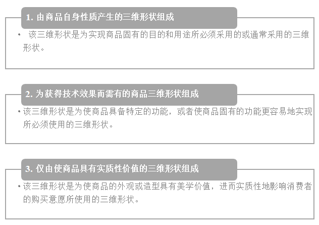 學(xué)理上的分類對于判斷三維標(biāo)志的功能性有所參考價值,但在現(xiàn)實考慮中仍需側(cè)重于理解《商標(biāo)法》及《商標(biāo)審查審理指南》相關(guān)具體規(guī)定。